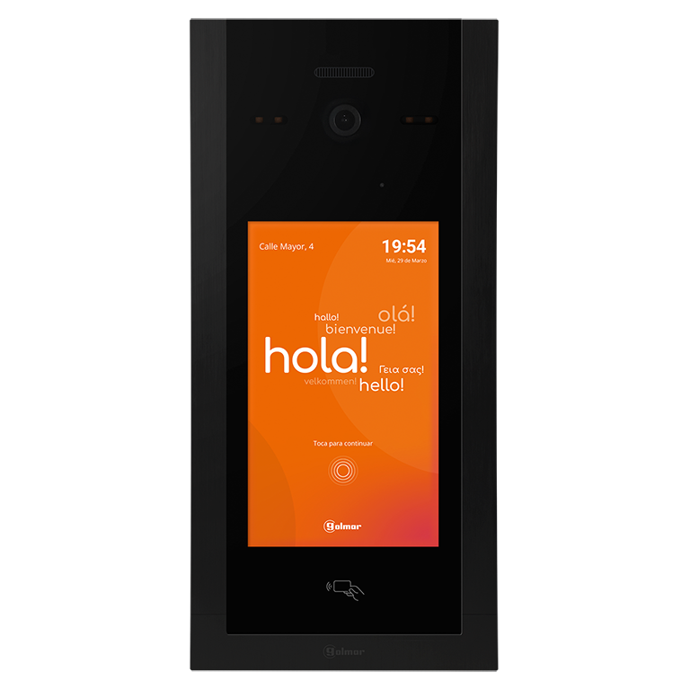 - 7″ TFT LCD colour screen with 600x1024px resolution that allows three calling methods: by entering the apartment address, searching through the contact list, or buttons.