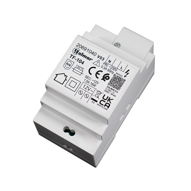- Power supply transformer for door entry systems with 4+n installation.